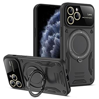 For iPhone 11 Pro Max Large Window MagSafe Holder Phone Case(Black)