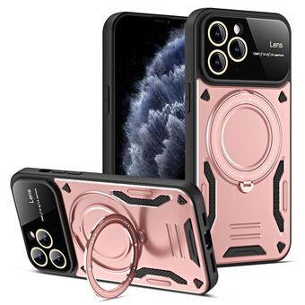 For iPhone 11 Pro Max Large Window MagSafe Holder Phone Case(Rose Gold)