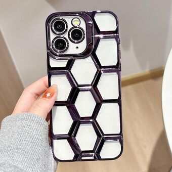 For iPhone 11 Pro Max Electroplating Laser Engraving 3D Honeycomb Clear TPU Phone Case(Purple)