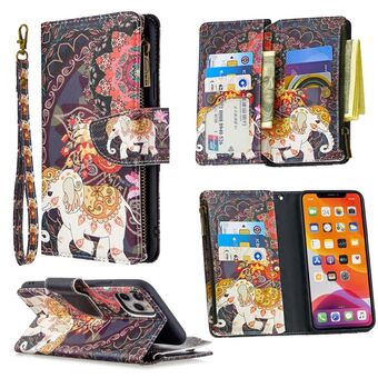 For iPhone 11 Pro Max Colored Drawing Pattern Zipper Horizontal Flip Leather Case with Holder & Card Slots & Wallet(Flowers and Elephants)