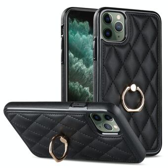 For iPhone 11 Pro Max Rhombic PU Leather Phone Case with Ring Holder(Black)