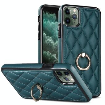 For iPhone 11 Pro Max Rhombic PU Leather Phone Case with Ring Holder(Green)