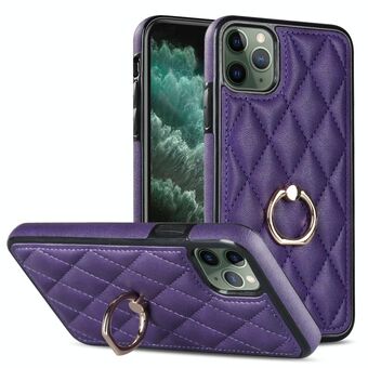 For iPhone 11 Pro Max Rhombic PU Leather Phone Case with Ring Holder(Purple)