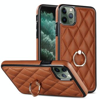 For iPhone 11 Pro Max Rhombic PU Leather Phone Case with Ring Holder(Brown)