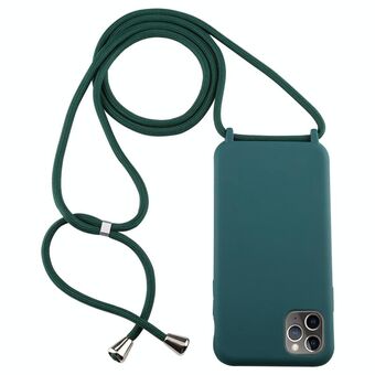 For iPhone 11 Pro Max Candy Color TPU Protective Case with Lanyard(Dark Green)
