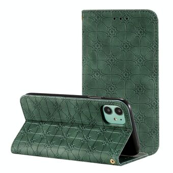 For iPhone 11 Pro Max Lucky Flowers Embossing Pattern Magnetic Horizontal Flip Leather Case with Holder & Card Slots(Dark Green)