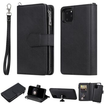 For iPhone 11 Pro Max 2 in 1 Solid Color Zipper Shockproof Protective Case with Card Slots & Bracket & Photo Holder & Wallet Function(Black)