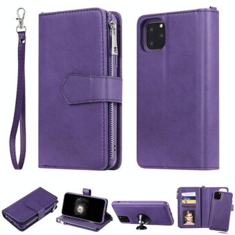 For iPhone 11 Pro Max 2 in 1 Solid Color Zipper Shockproof Protective Case with Card Slots & Bracket & Photo Holder & Wallet Function(Purple)