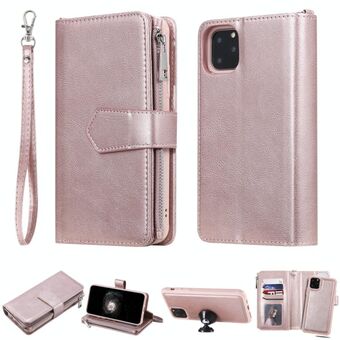 For iPhone 11 Pro Max 2 in 1 Solid Color Zipper Shockproof Protective Case with Card Slots & Bracket & Photo Holder & Wallet Function(Rose Gold)