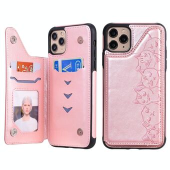 For iPhone 11 Pro Max Six Cats Embossing Pattern Protective Case with Holder & Card Slots & Photo Frame(Rose Gold)