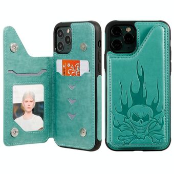 For iPhone 11 Pro Max Skull Head Embossing Pattern Shockproof Protective Case with Holder & Card Slots & Wallet(Green)