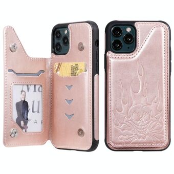 For iPhone 11 Pro Max Skull Head Embossing Pattern Shockproof Protective Case with Holder & Card Slots & Wallet(Rose Gold)