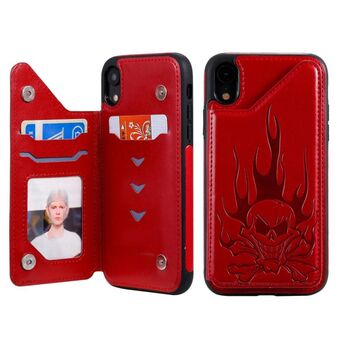 For iPhone XR Skull Head Embossing Pattern Shockproof Protective Case with Holder & Card Slots & Wallet(Red)