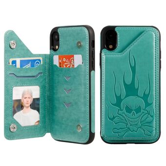 For iPhone XR Skull Head Embossing Pattern Shockproof Protective Case with Holder & Card Slots & Wallet(Green)