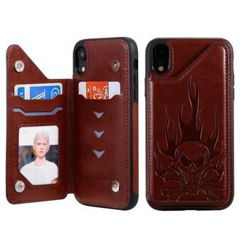 For iPhone XR Skull Head Embossing Pattern Shockproof Protective Case with Holder & Card Slots & Wallet(Brown)