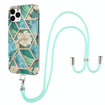 For iPhone 11 Pro Max Electroplating Splicing Marble Flower Pattern TPU Shockproof Case with Lanyard (Imperial Crown)