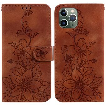 For iPhone 11 Pro Lily Embossed Leather Phone Case(Brown)