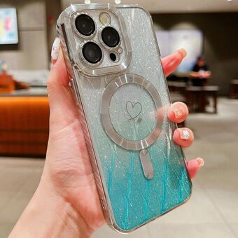 For iPhone 11 Pro Dual-Love Leaves Gradient Glitter Magsafe TPU Phone Case(Blue)