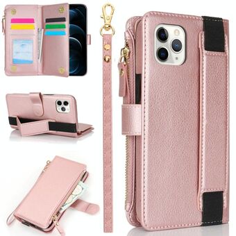 For iPhone 11 Pro Wristband Holder Zipper Purse RFID Leather Phone Case(Rose Gold)