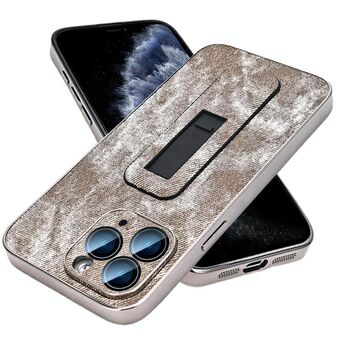 For iPhone 11 Pro Denim Pattern Electroplated Push-pull Bracket Cooling Phone Case(Grey)