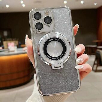 For iPhone 11 Pro Electroplated Holder Gradient Glitter MagSafe Phone Case(Purple)