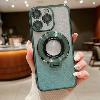 For iPhone 11 Pro Electroplated Holder Gradient Glitter MagSafe Phone Case(Green)