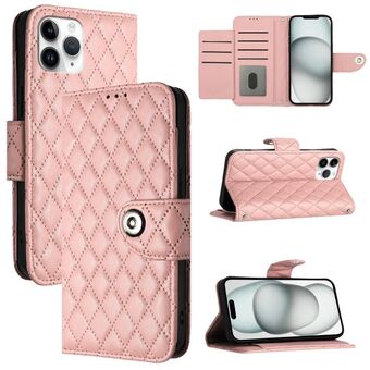 For iPhone 11 Pro Rhombic Texture Flip Leather Phone Case with Lanyard(Pink)