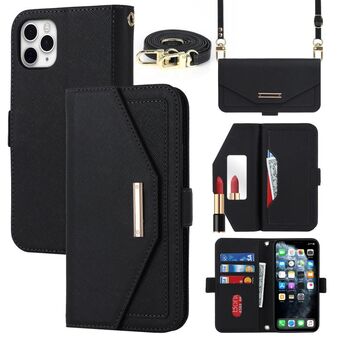 For iPhone 11 Pro Cross Texture Lanyard Leather Phone Case(Black)
