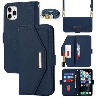 For iPhone 11 Pro Cross Texture Lanyard Leather Phone Case(Blue)