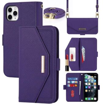 For iPhone 11 Pro Cross Texture Lanyard Leather Phone Case(Purple)