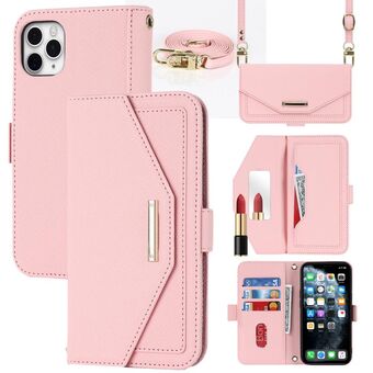 For iPhone 11 Pro Cross Texture Lanyard Leather Phone Case(Pink)