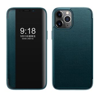 For iPhone 11 Pro Magnetic Side Window View Shockproof Horizontal Flip Leather Case (Cyan)