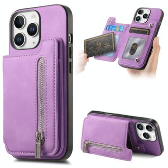 For iPhone 11 Pro Retro MagSafe Zipper Wallet Card Bag Back Phone Case(Purple)