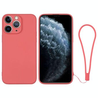 For iPhone 11 Pro Silicone Phone Case with Wrist Strap(Lotus Pink)