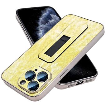 For iPhone 11 Pro Denim Pattern Electroplated Push-pull Bracket Cooling Phone Case(Yellow Green)