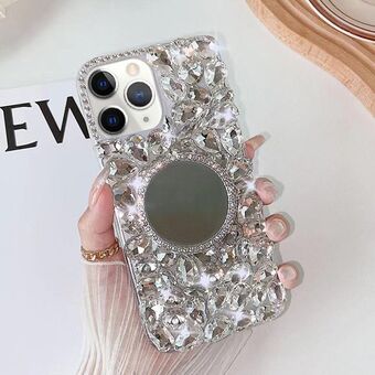 For iPhone 11 Pro Mirror Handmade Bling Rhinestone PC Phone Case(Silver Gray Round)