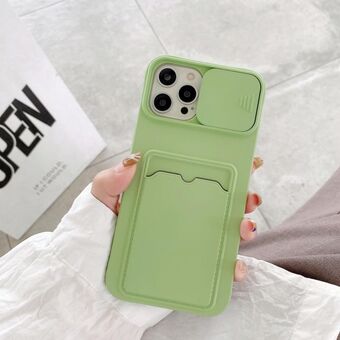 For iPhone 11 Pro Sliding Camera Cover Design TPU Protective Case With Card Slot & Neck Lanyard (Green)