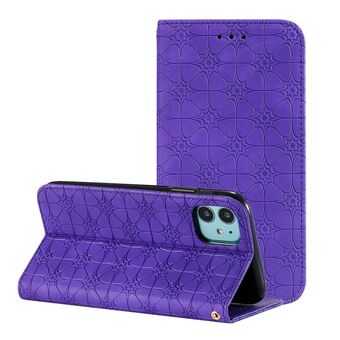 For iPhone 11 Pro Lucky Flowers Embossing Pattern Magnetic Horizontal Flip Leather Casewith Holder & Card Slots(Purple)