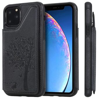 For iPhone 11 Pro Cat Tree Embossing Pattern Shockproof Protective Case with Card Slots & Photo Frame & Holder(Black)