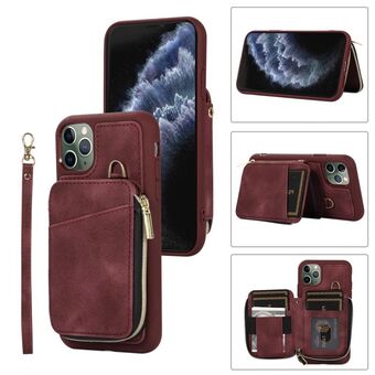 For iPhone 11 Pro Zipper Card Bag Back Cover Phone Case(Wine Red)