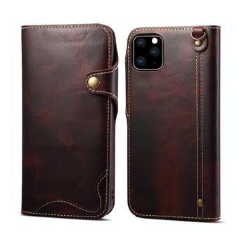 For iPhone 11 Pro Denior Oil Wax Cowhide Magnetic Button Horizontal Flip Leather Case with Card Slots & Wallet(Dark Red) (Denior)