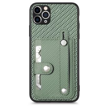 For iPhone 11 Pro Wristband Kickstand Card Wallet Back Cover Phone Case with Tool Knife(Green)
