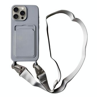 For iPhone 11 Pro Card Slot Liquid Silicone Phone Case with Lanyard(Grey)