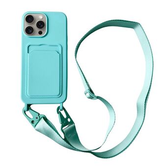 For iPhone 11 Pro Card Slot Liquid Silicone Phone Case with Lanyard(Mint Green)