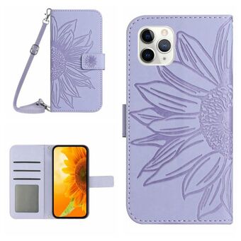 Θήκη τηλεφώνου από δέρμα με σχέδιο ηλιοτρόπιου και αίσθηση δέρματος για iPhone 11 Pro, τύπου flip, με κορδόνι (Κόκκινο)