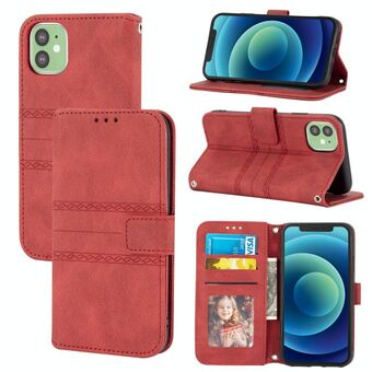 For iPhone 11 Pro Embossed Striped Magnetic Buckle PU + TPU Horizontal Flip Leather Casewith Holder & Card Slot & Wallet & Photo Frame & Sling (Red)