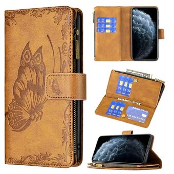 For iPhone 11 Pro Flying Butterfly Embossing Pattern Zipper Horizontal Flip Leather Case with Holder & Card Slots & Wallet(Brown)