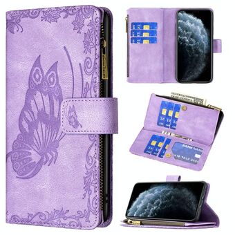 For iPhone 11 Pro Flying Butterfly Embossing Pattern Zipper Horizontal Flip Leather Case with Holder & Card Slots & Wallet(Purple)