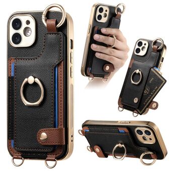 For iPhone 11 Fashion Ring Card Bag Phone Case with Hang Loop(Black)