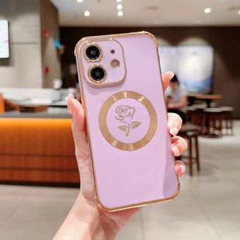 For iPhone 11 Electroplating Soft Side Sticker Leather MagSafe Phone Case(Gold)